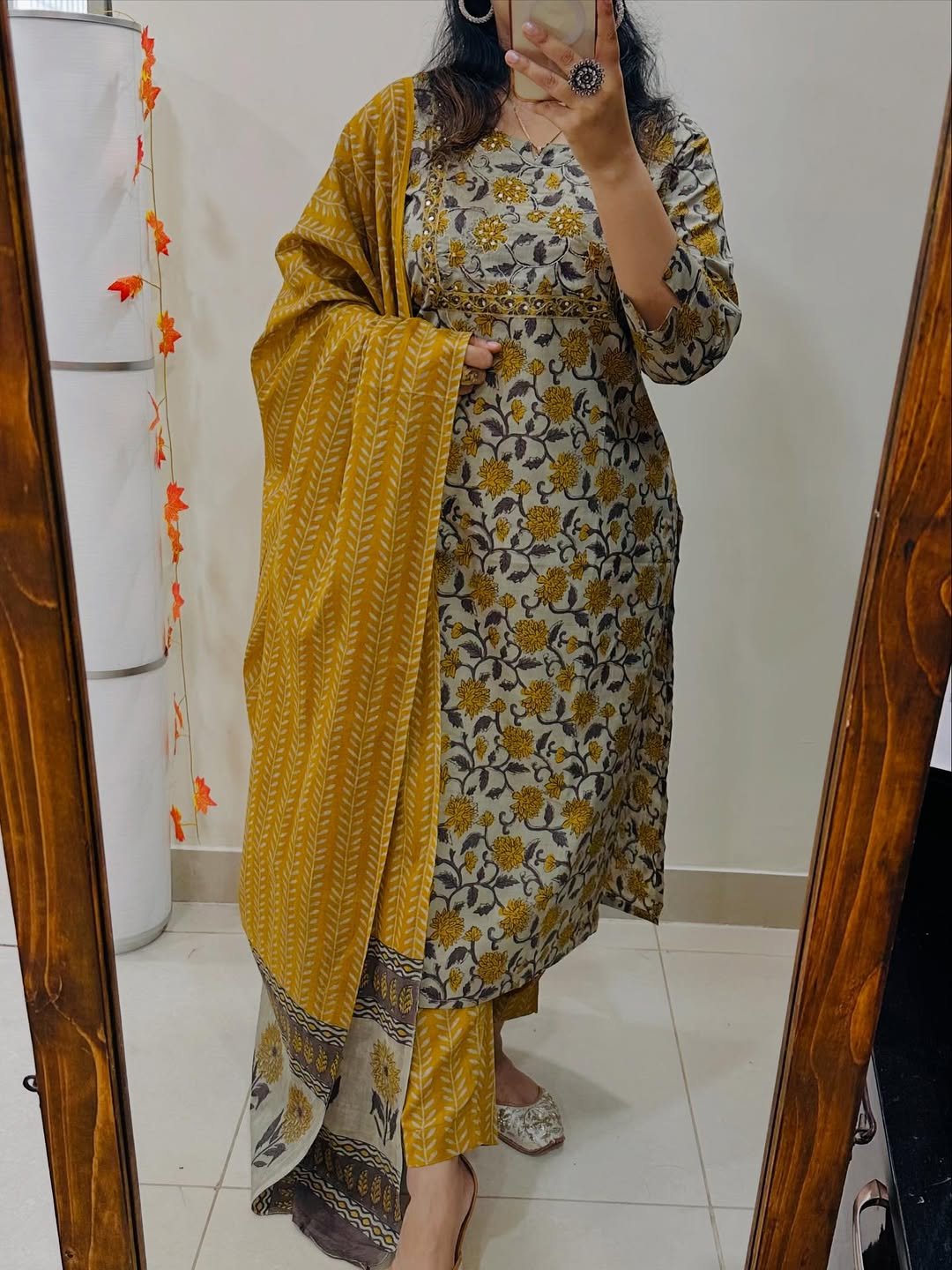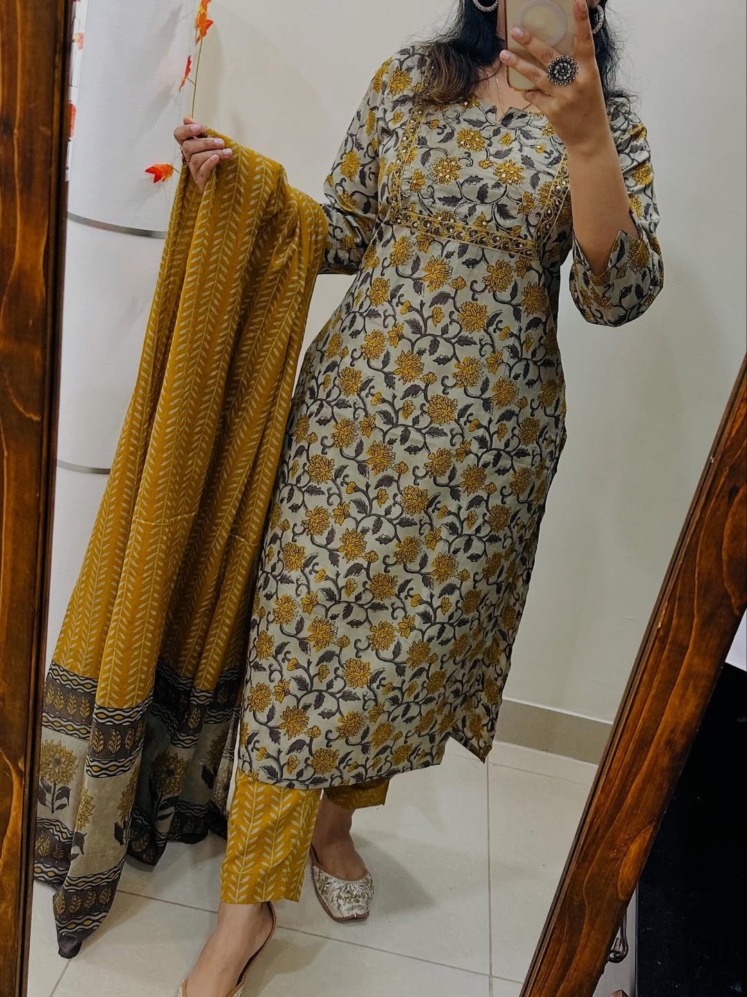 আড়ং-এর সুতি কটন কাপড়ে নান্দনিক ফ্লোরাল স্ক্রিন প্রিন্ট। গলায় ইস্টন কাজের জাদু।