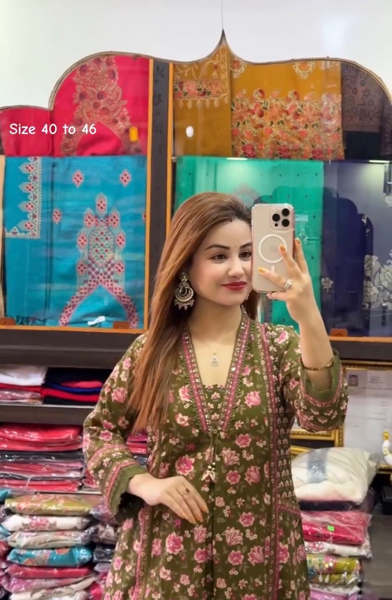 Pista Green Kurti Shrug Set with Flower Patti Design